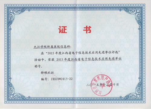 临床医学院/附属医院荣获2015年度江西省信息技术应用先进单位