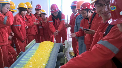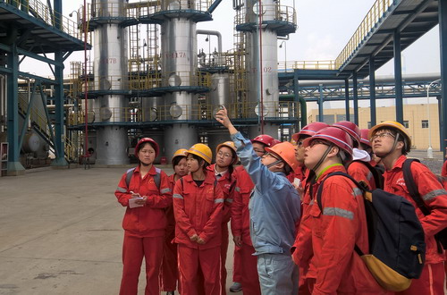 见习期间,学生受到了企业的热情接待,九江石化教培中心和见习的车间都委派了专门技术人员对整个见习的内容进行了详尽指导和解说。在生产管控中心,通过技术人员的介绍,了解了油品检测过程和标准,懂得了水质如何进行分析,明白了大气如何进行监控。在炼油运行五部、炼油运行六部和聚丙烯生产车间,通过技术人员的介绍,同学们了解到这三个车间的工艺装置、工艺流程、工艺技术及产品去向等情况。在见习中,同学们对车间的布局和实际的生产过程装置有了深入的直观感受,加深了对生产工艺的理解。