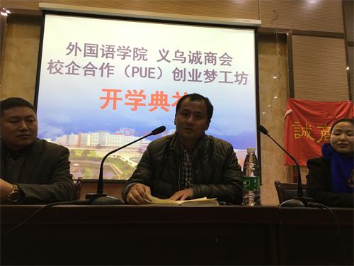 经过前期缜密筹备,我校外国语学院校企合作平台实现了与义乌城商会——创业梦工坊的首次合作,并于3月21日晚在香远楼3楼报告厅举行开课仪式。