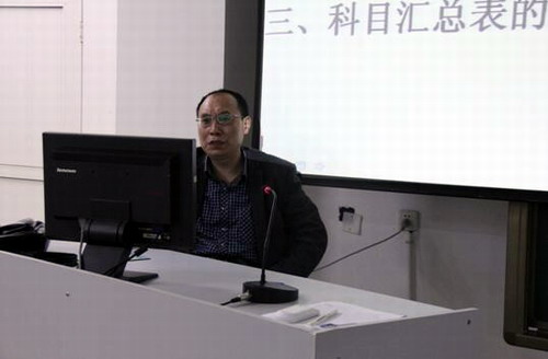 乐长征老师就财务会计课程教学内容的归纳、财务会计课程教学内容的演绎、科目汇总表的应用三个问题与大家进行了交流;任高飞老师对《税法》省级精品资源共享课在线试题库建设及使用进行了介绍;杨华老师就会计分岗竞赛软件的操作及课堂上的应用进行了介绍。