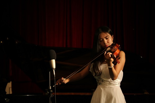 白航同学用一首艺术歌曲《在异乡》开始了今天晚上的演出,流畅的德语以及美妙的声音赢得了观众阵阵的掌声。《像天使一样美丽》、《绒花》、《海恋》等歌曲风格各异,有的高亢,有的舒缓,神情也是随歌哀愁,随歌激昂。白航同学动情的演唱和细腻的情感表达获得了台下各位老师的认可,让在场学生观众丝毫不吝惜自己的掌声。钢琴伴奏与白航同学配合默契,让每首作品都非常完整的呈现给了听众。