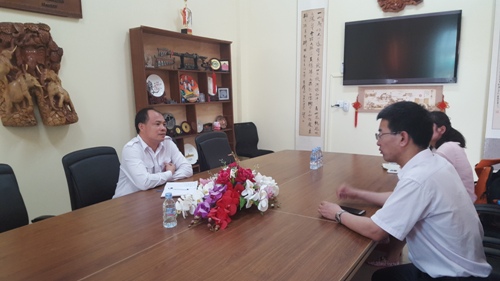 6月10日下午,无锡商业职业技术学院国际合作与交流处处长李传彬来访柬埔寨王家研究院孔子学院,中方院长帅式毅会见并进行了友好交谈。