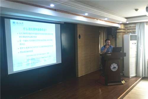 会上,夏春华教授从机构建设意义、我国药物临床试验机构现状、如何做好迎接现场检查的准备以及机构资格认定现场检查的关注点等五个方面详细介绍了药物临床试验申报的相关内容及现场资格认定的注意事项,并结合“领导重视”、“全员关注”、“充分准备”、“虚心学习”等要点为临床医学院/附属医院药物临床试验机构申报工作提供了切实可行的意见和建议。徐文炜教授从医院药物临床试验伦理委员成立背景、伦理准则、相关职责、工作流程等几个方面做了详细的讲解指导,并对伦理委员会的人员组成、组建流程、培训管理、制度建设、学习记录等方面提出了要求。