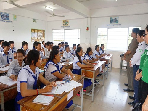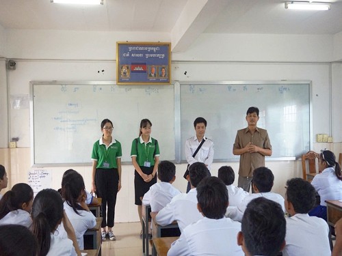 柬埔寨孔子学院马德望国际大学汉语中心老师赴博那学校做招生宣传