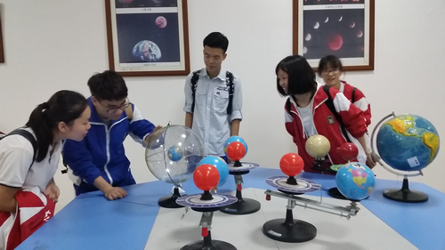 一中师生在旅游与国土资源学院老师的带领下逐一参观了地质陈列馆、地质地貌实验室、天文气象实验室、地图与测绘实验室、遥感与GIS实验室、鄱阳湖生态模拟仿真实验室等。在地质实验室,旅游与国土资源学院专业教师向学生们讲解了矿物及岩石的识别特征与鉴定方法、古生物化石的类型及其地质意义、地球的演化历史;在天文气象实验室,大家观摩了三球仪、天文望远镜的运行;在地图与测绘实验室了解了地图的编制及测绘仪器等的操作;在鄱阳湖生态模拟仿真实验室了解了鄱阳湖的形成与演化历史、鄱阳湖生态环境等。