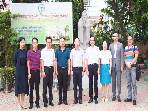11月4日下午,广西防城港市市委书记金湘军一行七人访问柬埔寨王家研究院孔子学院,孔子学院中方院长夏修龙教授、院长助理陈晶雯老师热情接待了金湘军书记一行,并与客人进行了会谈。