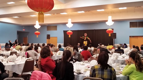 晚会首先由孔子学院汉语教师钟佳艺表演傣族舞《侗乡之夜》,优美动人的舞蹈拉开了庆祝晚会的帷幕。随后孔子学院汉语初级班学生们以一首汉语歌曲《对不起,我的中文不好》赢得了在场观众的热烈掌声,中级班的学生们则尝试用汉语演绎经典诗歌,声情并茂地朗诵了《当你老了》,将现场气氛推向高潮。表演节目精彩纷呈,来自亚特兰大的舞蹈团和宾汉顿大学戏曲孔子学院的老师们也分别送上了精彩的舞蹈表演和京剧选段,为晚会增添了浓浓的中国风情。