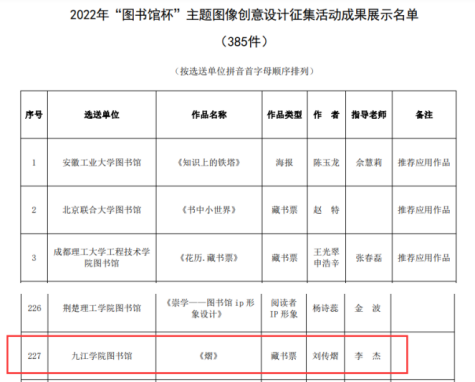 近日,由中国图书馆学会主办的多项阅读推广活动落下帷幕,在校图书馆的积极组织下,九江学院师生踊跃参与,并喜获佳绩。