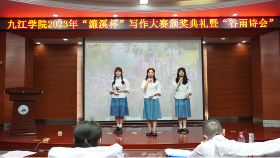 九江市作家协会、九江市图书馆、九江市周敦颐纪念馆、九江市德化学校等单位和校党委宣传部、校团委、图书馆及文学院相关负责人、师生代表参加了颁奖仪式和诗会。