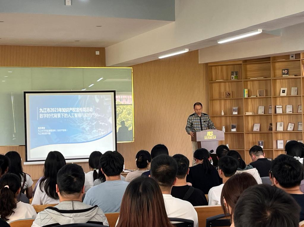 4月21日下午,图书馆与九江市市场监督管理局(知识产权局)联合主办了知识产权日主题讲座。华东交通大学朱梦云博士受邀为我校师生带来了题为《数字时代背景下的人工智能与知识产权》的报告。