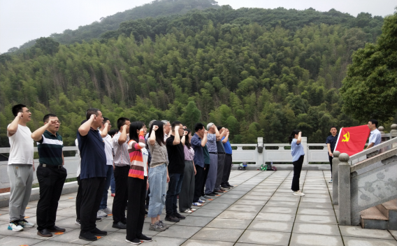 “我志愿加入中国共产党……随时准备为党和人民牺牲一切,永不叛党。”初夏时节、草长莺飞、万物并秀。在郁郁葱葱的金盘山脚下,一群九江学院离退休党总支和机关支部的党员在岷山烈士纪念塔前肃穆伫立,瞻仰烈士纪念塔,缅怀先烈丰功伟绩。他们面向党旗,庄严地举起右手,重温入党誓词,追忆入党初心。