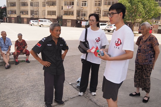 聚焦农村基层,传递点滴温情。顶着酷暑骄阳,“文小青”服务队在谭畈村新时代文明实践站工作人员的带领下开展入户走访及社区环境清洁工作,在活动过程中,队员们一个个手拿民情日志,与村民面对面交流,收集群众问题并向群众发放《给群众的一封信》,引导群众积极参与公众安全感和政法队伍满意度调查活动,增进群众对检察工作的了解。