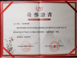 近日,由中国语文报刊协会读写教学分会举办的第五届全国大学生语言文字能力大赛决赛成绩揭晓,我校文学院汉教A2151班由吴舒雅老师指导的6位同学中有4位晋级决赛,郑欣宇同学获得大赛决赛专业组一等奖,杨青霞、胡凌煊同学获决赛专业组三等奖,黄燕同学获决赛专业组优秀奖。