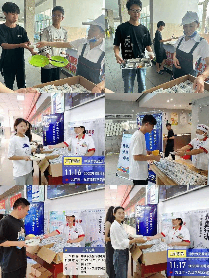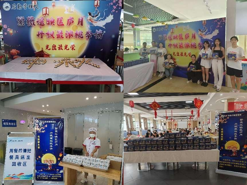 紫薇遥映匡庐月,丹枫最浓桃李情。9月28日,在中秋节和国庆节双节即将到来之际,为了倡导大家共同践行“反对浪费、节约光荣”的就餐理念,为全校师生营造寄怀相思的佳节氛围,学校后勤管理处精心组织在各食堂开展“光盘”送月饼活动。