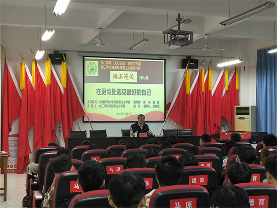 11月6日晚,由九江学院“文心琢玉”思政工作室、九江学院青年马克思主义者研习社联合举办的第九期“琢玉漫谈”在学校香远楼212会议室举行。漫谈邀请党的二十大代表、全国优秀共产党员、全国先进工作者、全国模范教师、全国最美思政课教师、全国师德标兵、安徽师范大学路丙辉教授与我校大一新生畅谈“如何在更高处遇到最好的自己”。马克思主义学院负责人、部分教师代表、2023级学生思政课课代表和思政学习骨干等共计100余人参加了漫谈。