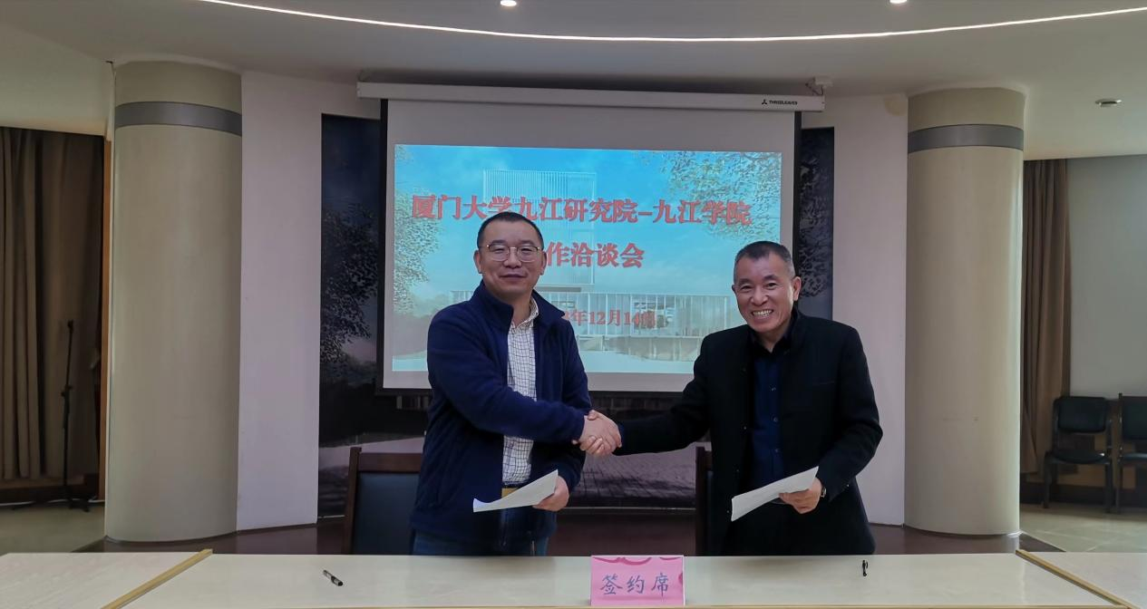 科研处处长汪鑫与厦门大学张学骜教授签署了九江学院-厦门大学九江研究院合作协议。该合作将会促进双方的深入合作,共同培养优秀人才,推动产学研合作,加速科技成果的转化,为九江学院的发展注入新的动力。
