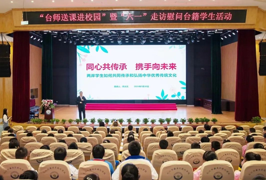 为更好地传承和弘扬中华优秀传统文化,共促两岸同胞心灵契合,在“六一”国际儿童节来临之际,由九江市台办、九江学院文学院联合指导,濂溪区台办、濂溪区教体局、共青团濂溪区委联合主办的“台师送课进校园”暨“六一”走访慰问台籍学生活动,于5月30日在濂溪区德化学校开展。
