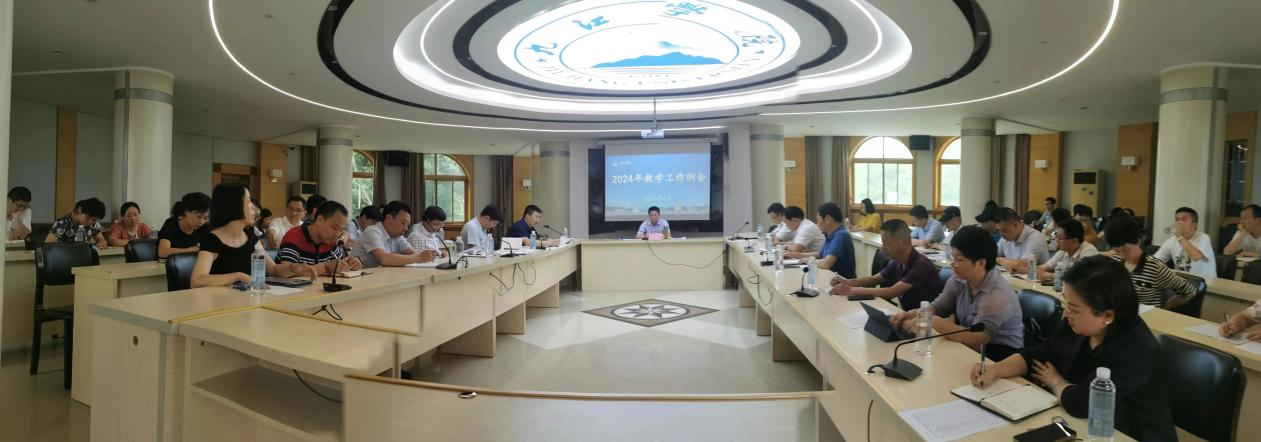 为做好期末教学工作总结,分析存在的问题,坚持问题导向,持续改进,并做好暑期工作安排,提前谋划,提高工作效率和质量,6月19日,学校在行政楼一号会议室召开本学期期末教学例会。副校长李松志,教务处、教学质量监控与评估处、学生工作处、团委、实验室与教育技术中心、图书馆、医学部、创新创业学院负责人,教务处副科级以上干部,各二级学院教学副院长、教务科长参会。