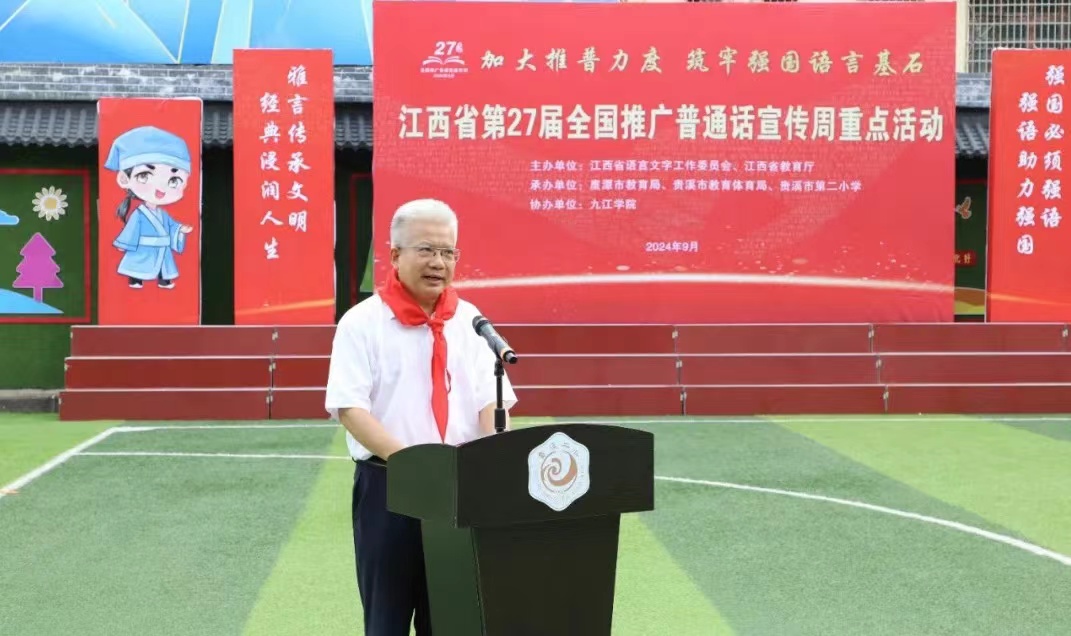 9月20日上午,江西省第27届推普周系列活动重点活动在贵溪市举行。由江西省语言文字工作委员会、省教育厅主办,鹰潭市教育局、贵溪市教体局、贵溪市第二小学承办,九江学院协办。省委教育工委委员、省教育厅副厅长汪立夏,我校党委委员、副校长李松志,省教育厅语材处处长、语委办主任张婵,教务处、鹰潭市教育局及贵溪市相关负责人等出席活动。