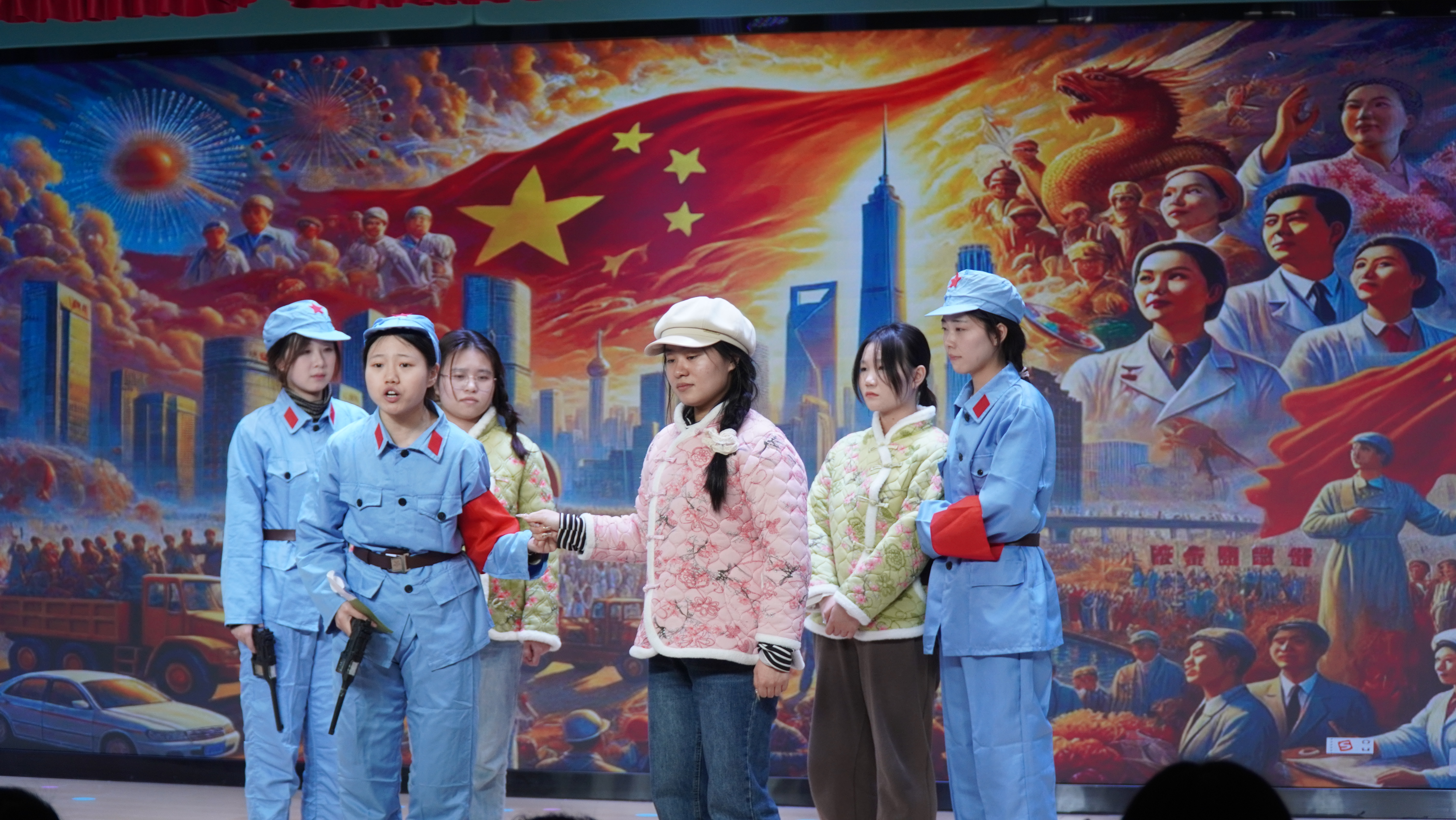 演出活动中,我校文学院和教育学院学生为小朋友们带去了红色情景短剧《鸡毛信》、朗诵《雷锋》、歌舞诗朗诵《我和我的祖国》,第四幼儿园的师生表演了舞蹈朗诵《红星闪闪》、《我的国我的家》和红色故事《我的祖国》。他们时而饱含深情、时而娓娓道来,时而声音宏亮、时而激情洋溢,让整个活动高潮迭起、掌声不断,悠扬的背景音乐、精彩的背景视频、绘声绘色的诵读迅速抓住了观众的心,跌宕起伏的情节、扣人心弦的故事,为小朋友们带来了一段段感人的回忆,激发了幼儿的民族自豪感和责任感。