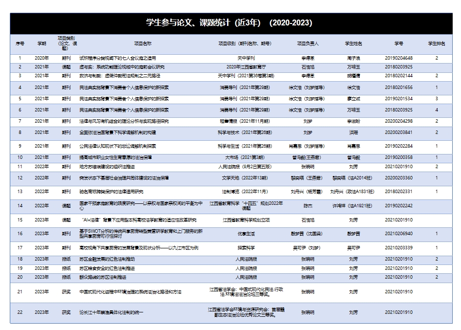 (法学院学生参与论文、课题成果)