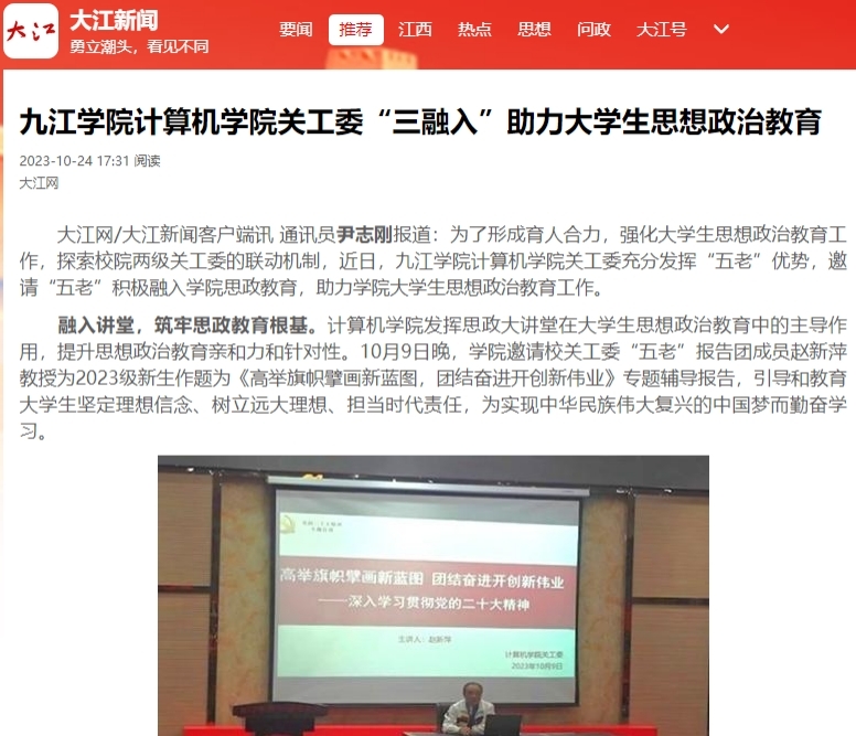 深入推进“三全育人”综合改革,坚持“五育并举”,推动在学生中实现“五个一”,搭建育人新生态,践行立德树人根本任务,筑牢政治定力。整合专业教师、学工队伍、专职辅导员、企业工程师兼职班主任“四方”立体化育人力量,搭建以赛促学、以赛促教、以赛促创育人闭环。拓展素质教育阵地,鼓励大学生投身乡村振兴实习实践,积极开展“三下乡”和红色走读活动,提高学生综合素质和社会责任感。学院建成计算机历史陈列馆,征集陈列国产和进口的老式台式计算机、笔记本、打印机约50台(套/件),精彩展示计算机近30年的发展迭代史。陈列馆作为计算机发展历史的见证与记忆,很好地激发了学生专业学习热情,增强了学生的科技报国情怀,成为学院计算机课程思政教育的特色品牌。学院先后获得江西省全省高校红色走读活动实地走读三等奖、全省大学青春之问征集活动获一、二、三等奖各1人,1人荣获2021年度中国大学生自强之星。教师指导学生参加“蓝桥杯”“天梯赛”“机器人开发者大赛”等各类学科竞赛,近三年,获得省级及以上奖励500多项,其中国家级奖励50多项。教师指导学生发表高水平学术论文14篇,其中SCI论文4篇,EI论文10篇;组织学生参加“数字技术”鄱湖论坛、演化计算与学习研讨会等学术会议,在拓宽学生学术视野、激发学生学术兴趣上取得了良好效果。
