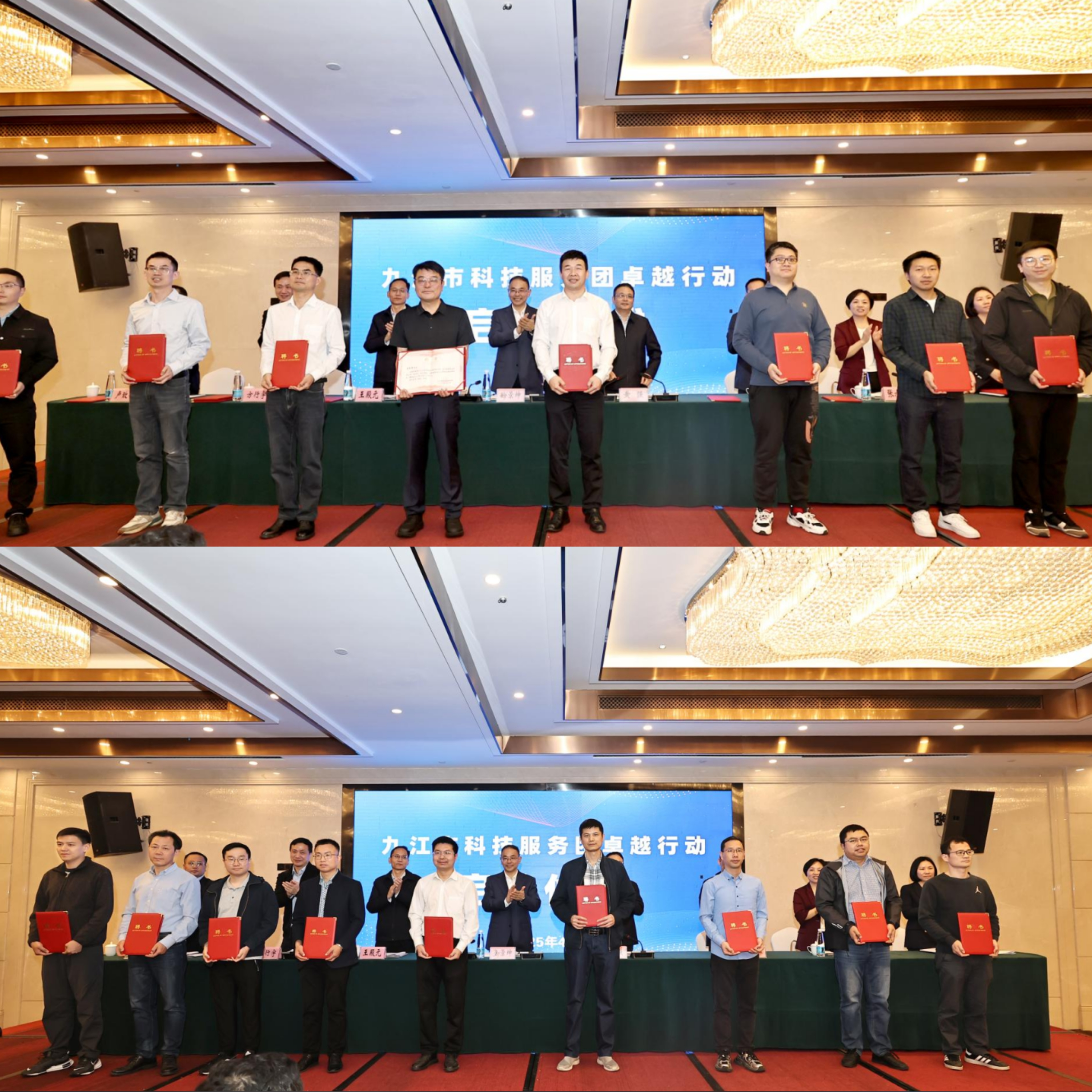 4月17日上午,九江市科技服务团卓越行动启动仪式举行。省科协主席徐景坤,市委副书记黄强,我校党委委员、副校长王殿元出席会议并为科技服务团颁发聘书。启动仪式上,我校宋士华教授受聘为九江市科技服务团卓越行动总团长,我校9名博士入选九江市科技服务团卓越行动首批团长。