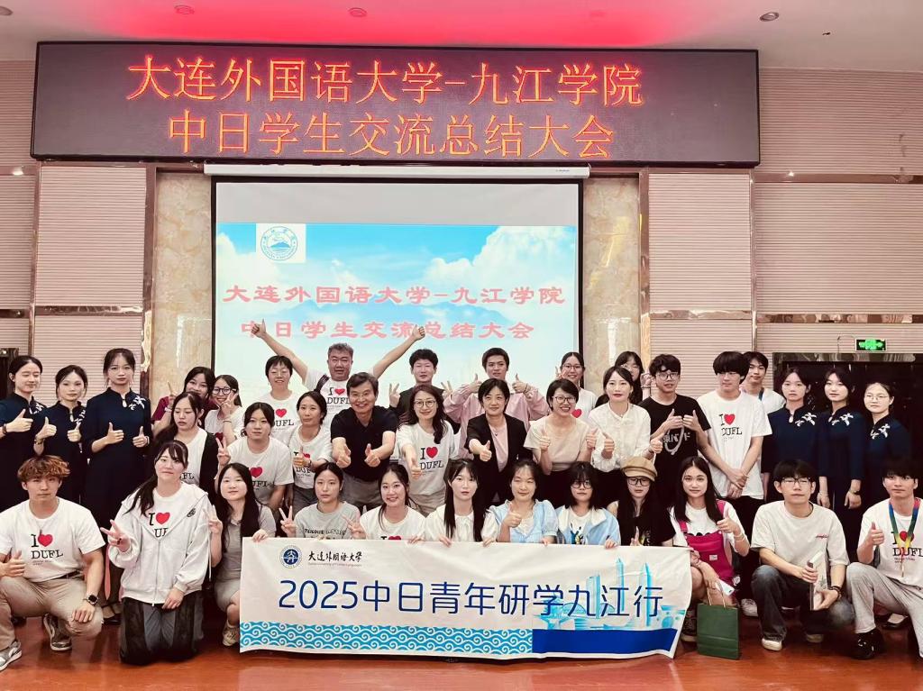 6月12日,此次交流活动总结会在香远楼三楼报告厅举行。在“我眼中的九江”短视频作品展示环节,五组中日大学生团队分别从不同视角呈现了九江的山水与人文特色,精彩的视频作品得到了在场中外师生的阵阵掌声。活动总结会在中日学生的大合唱中落下帷幕,为“2025中日青年研学九江行”活动画上了完美的句号。