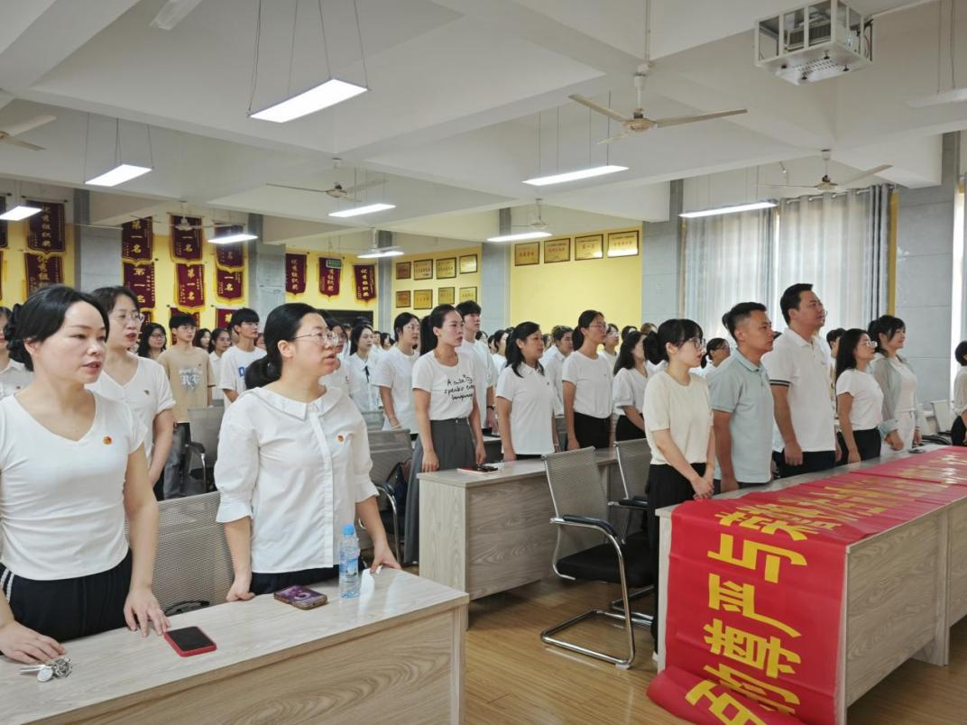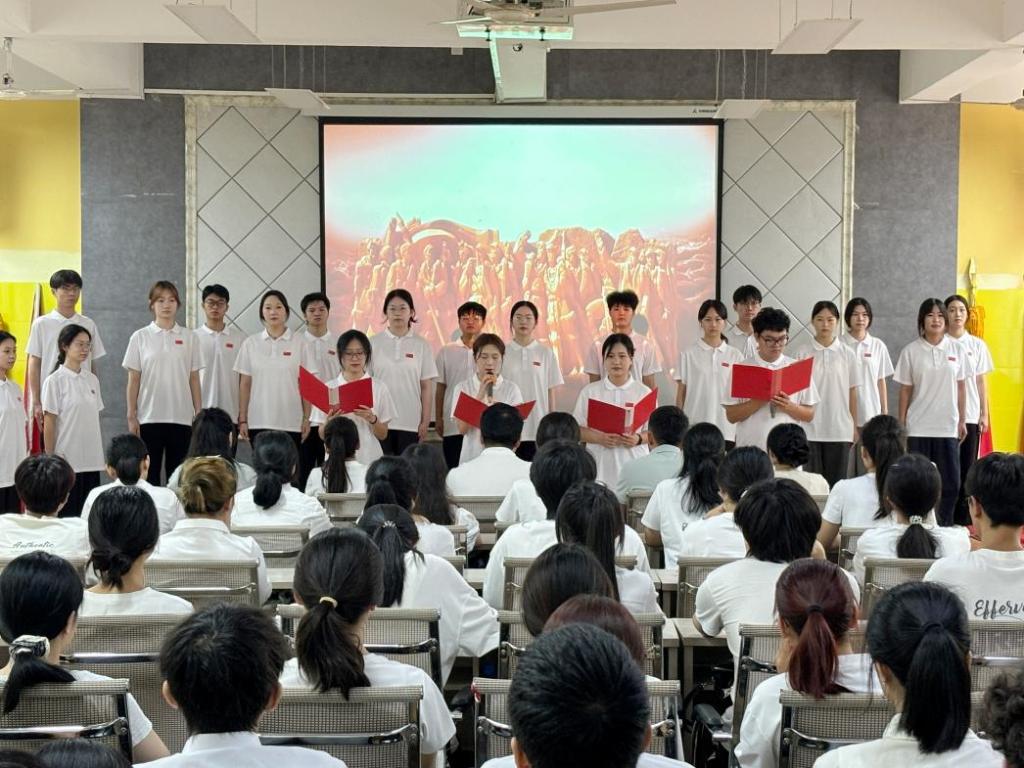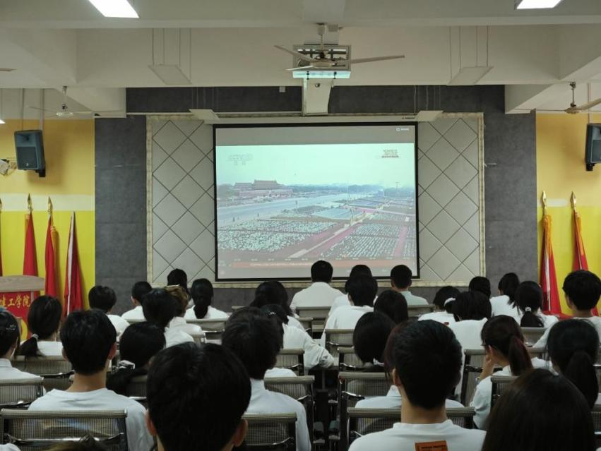 9时整,全体师生集体观看纪念中国人民抗日战争暨世界反法西斯战争胜利80周年大会的现场直播,共忆峥嵘岁月,同瞻胜利荣光。观看结束后,在领誓人的带领下,师生们高举右拳,庄严宣誓,纷纷以铿锵誓言彰显对党的无限忠诚,以及为共产主义事业奋斗终身的坚定决心。